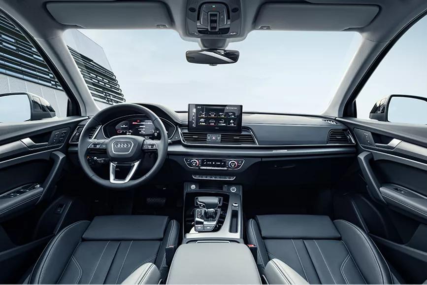 内饰部分,新款奥迪Q5L的内饰设计与老款相似,但是细节上的优化进一步提升了整体的档次感,例如搭载了尺寸更大的悬浮式中控屏(10.1英寸)。另外,新车还搭载了全新自然语言交互系统,快速的语音语义识别可以给用户带来畅快的操作体验。