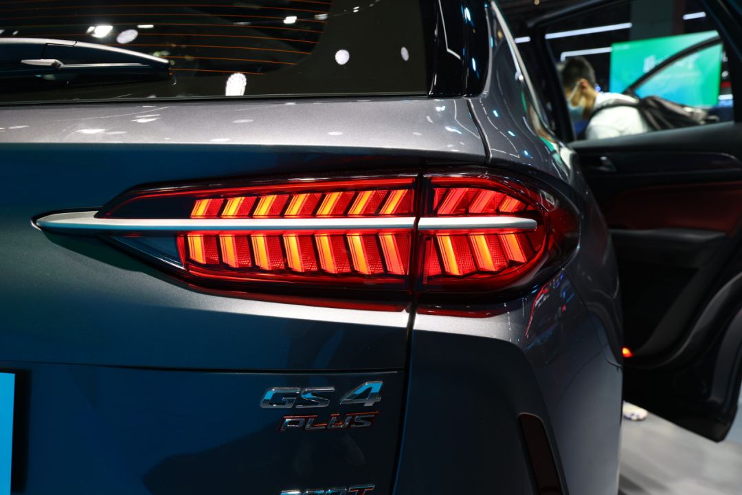 尾部方面,传祺GS4 PLUS采用全新的羽翼式灯组,内部灯珠呈羽翼状排列,预计在夜晚点亮后会有着极强的辨识度。同时,凹凸有致的尾部造型让整车看上去更加前卫。另外,新车还配备了双边共两出的排气布局,给新车营造不错的运动氛围。
