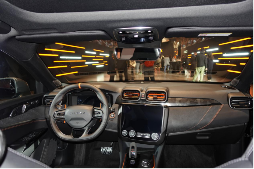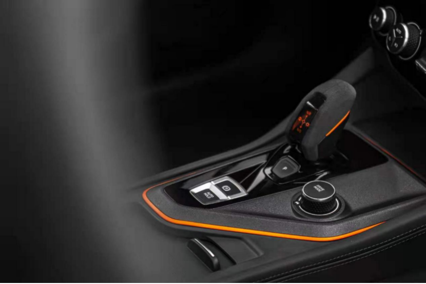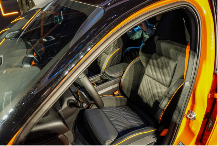 大面积的Alcantara材质覆盖整个车内,而方向盘、空调出风口、以及安全带等等都加入了橙色的配色。