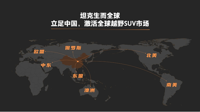 同时,坦克品牌将构建全球共创(Co-creation)、智联互通(Connection)、渠道创新(Channel innovate)、触点升级(Contact upgrade)的全球化“4C”新商业模式,将从技术研发、用户生态、渠道布局、用户触点等维度着手,快速打造坦克品牌全球化布局。通过互联网技术,快速穿透地域壁垒,实现与全球用户共创坦克品牌。坦克品牌更将以领先的全球合伙模式与合作伙伴共赢,采用直达用户的新型渠道模式,与用户建立紧密联系,让不同国度、地域的坦克手,感受别致的越野体验。