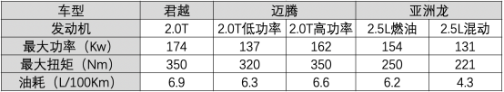 亚洲龙搭载的2.5L发动机,在数据上完全不如迈腾和君越,它的明显优势有两个,一是能够加注92号汽油,后续使用成本略低一点。另外是拥有混动系统可供选择,带来的产品丰富度更大一些。