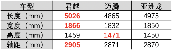 从数据来对比,君越在长宽和轴距上有显著超越,尤其是轴距上的优势,能够带来车内第二排乘坐空间的扩展。