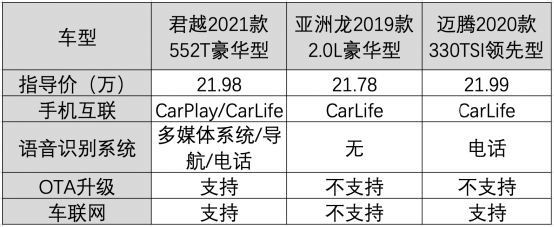 智能化是如今消费需求里被提及最多的一项,三台车在该领域的触及程度是有明显差别的,如标题所写,别克和丰田大众被划分为革新派和保守派,尤其是智能化的丰富度上,君越更胜一筹。
