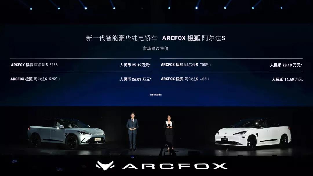 抢在上海车展之前,ARCFOX极狐品牌率先开展了一场之夜活动,正式上市了旗下智能豪华纯电轿车——阿尔法S,售价为25.19-34.49万元。同时,极狐还发布了一款与华为联手的重磅车型——阿尔法S华为HI版,高达38.89-42.99万元的预售价也让其成为了整晚的焦点。