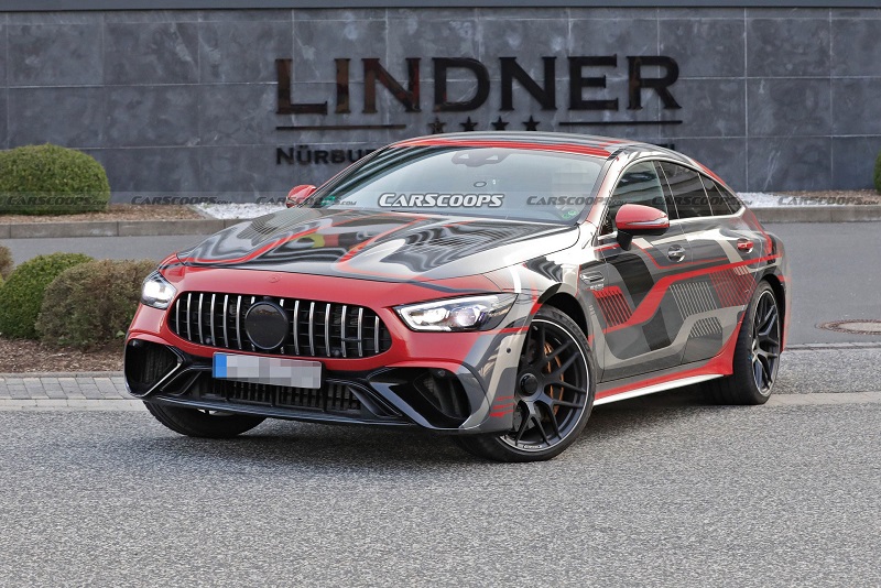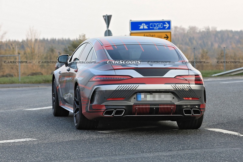 日前,有外媒曝光了梅赛德斯-AMG GT (配置|询价) 73e的最新路试谍照,新车基于梅赛德斯-AMG GT 50打造而来,并换装了动力更加强劲的插电式混合动力系统,由4.0T V8发动机和单电机组成,系统综合最大功率或为805马力左右。