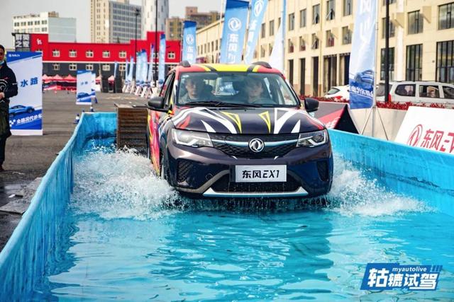 最后是涉水项目,这跟其他燃油车型涉水测试的目的不同,东风EX1的涉水测试目的主要是为了考验电池与电驱系统的防水能力。这个项目对于东风EX1来说简直是小菜一碟,它在设计之初就已经考虑到了在极端路况下会出现涉水情况,所以对各电子系统都做了防水处理,消费者大可不必担心进水的问题。