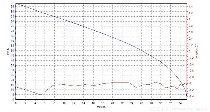 我们先从公布的主缸压力数据来看,45.9bar其实已经是一个正常人坐姿下用力踩下踏板的力度了,并不是该媒体声称的驾驶员踩下踏板较轻,到后面的92.7bar,大概等于一个成年人站起来玩命跺的力度。