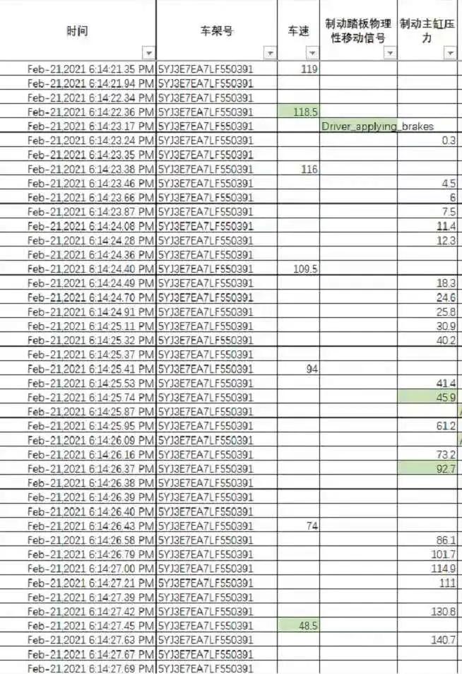 还有一点混淆的是,这里特斯拉的数据从头到尾指的都是制动主缸压力,也就是说刹车总泵的压力,刹车分泵是否有工作,助力是否有工作,刹车踏板的开合角度以及对应的实际力度这些关键数据是没有被公布的。