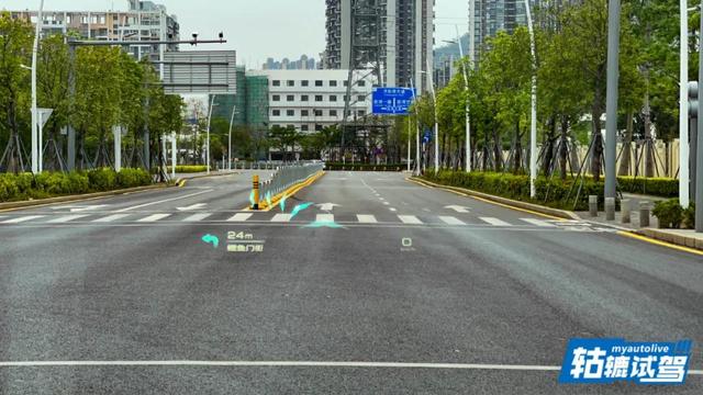 还有一个先进且实用的配置是AR-HUD系统,它能将车辆的导航、车速、限速标识等信息投射在挡风玻璃上,并且将要到达路口时,AR-HUD系统还会出现转向箭头进行指示,使用时,会感觉比普通的HUD系统更便利和更安全。因为能直观地看导航,同时转向箭头又能进行很好的提醒,开着车在复杂的城市道路行驶不容易错过路口。