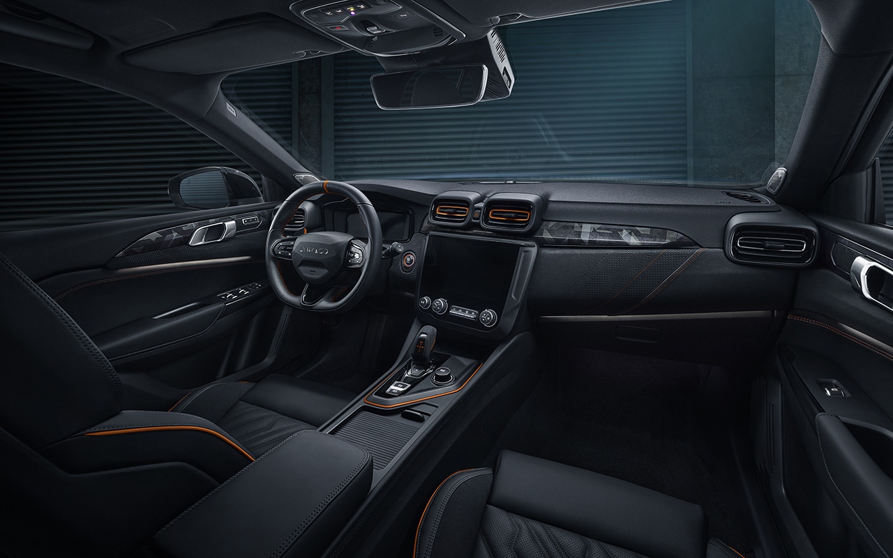 内饰部分采用非对称的都市对立美学设计,以驾驶者为中心延展,门饰板、中控台采用了非对称3D激光打孔设计;橙色运动安全带、三色缝线运动方向盘、橙色回正环、橙色换挡拨片、橙色出风口,共同营造橙色运动氛围,瞬间激发驾驶者的驾驶热情。