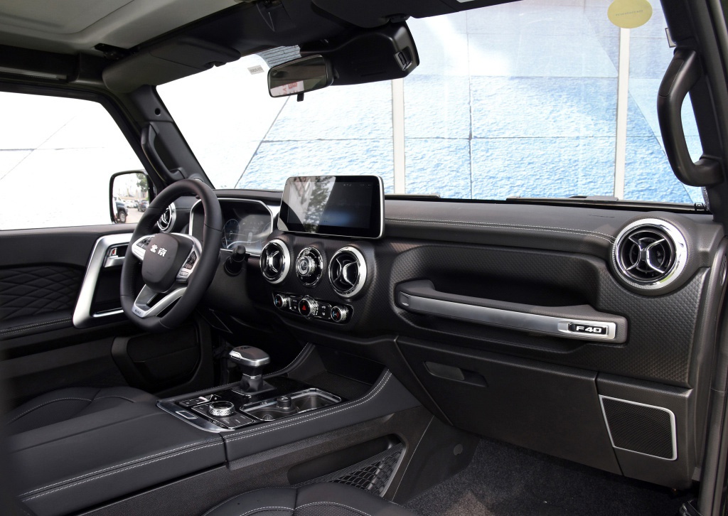至于内饰方面,北京F40看上去非常的简洁,中控区域的悬浮式液晶触摸屏,倒是增添了几分应有的科技感,空调出风口加以镀铬的装饰,加上大面积皮革材质的包裹,从而一定程度上提升了整体的档次感。配置上,该车提供车身稳定控制系统、上坡辅助系统、倒车影像、车联网系统等。