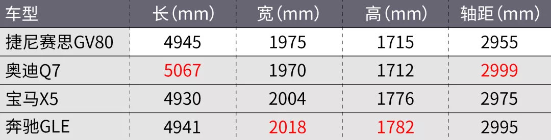 作为一辆中大型SUV,GV80的三围尺寸与竞争对手的Q7、X5、GLE (配置|询价)基本保持同一水平。值得一提的是,GV80在不到5米的车长内也提供了7座布局,但是第3排空间非常局促,只适合临时应急使用。至于动力系统,GV80搭载了与G80相同的2.5T+8AT组合,0-100km/h加速6.9秒,足以满足日常使用了。