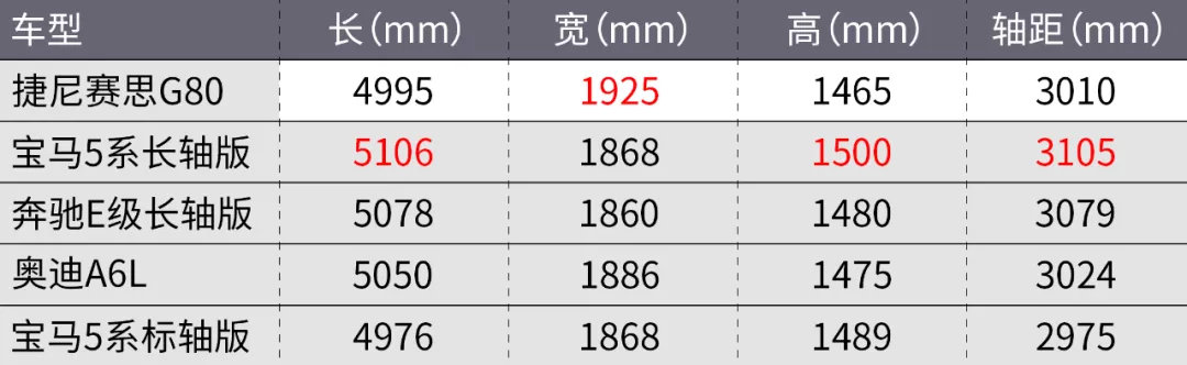 G80的侧面线条非常优雅,性感的溜背设计与车尾融合在一起,显得非常和谐。不过由于G80是一辆纯进口的标轴中大型轿车,因此在与竞争对手们的国产加长版本进行对比时,也只能在车身宽度上占到一定的优势,长度和轴距方面则是全面落后。