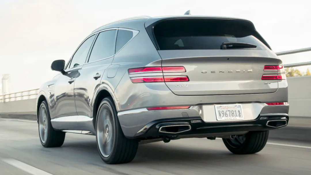 G80的尾部设计同样非常动感,上翘的小鸭尾与后备箱盖融为一体,尾灯组与大灯造型保持了一致,下方则是双边单出的实体排气。