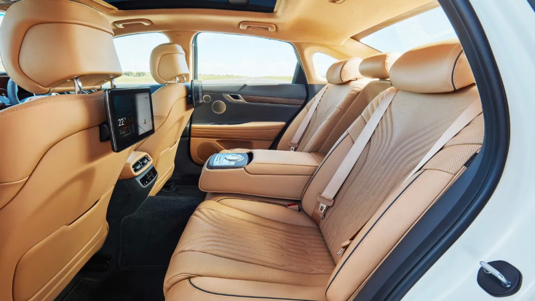 由于G80并没有加长,因此它的后排空间相比加长后的5、6、E还是有一定劣势的,不过这并不意味着它很局促,身高180cm的驾驶者正常坐姿,后排还有接近2拳的腿部空间,足以满足大部分用户的需求了。配置方面就完全不需要担心了,这是韩系车的强项。顶配车型提供了前后排座椅加热通风、后排独立空调、后排座椅电动调节、后排娱乐液晶屏等丰富的功能。