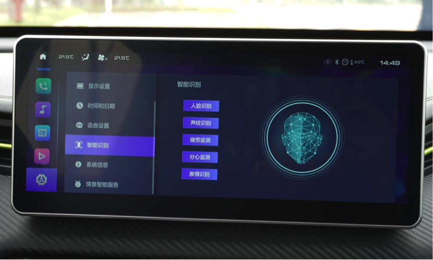 首先是提升行车安全的情绪识别系统,它会在驾驶时监测司机的注意力,当判定司机有分心时会发出注意力报警,提示驾驶员专心开车。