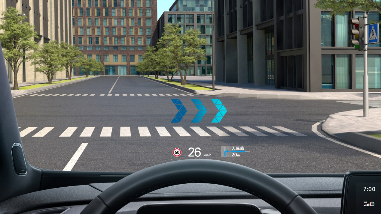 其中,AR-HUD增强现实抬头显示系统,可以把驾驶辅助信息直接投射在道路上,充分扮演一个贴心智慧的领航员角色。