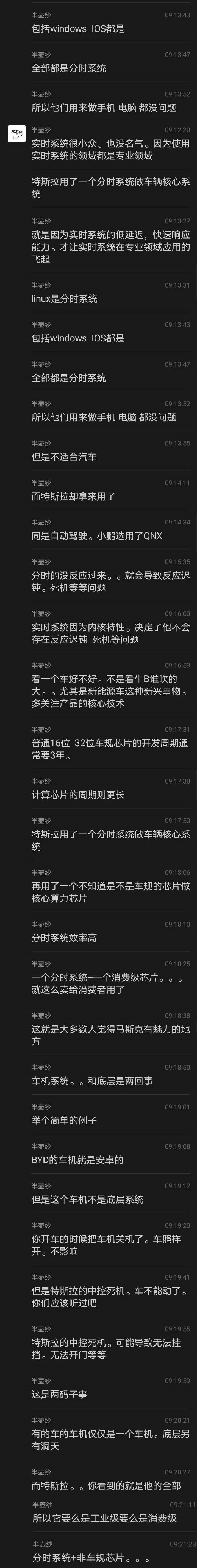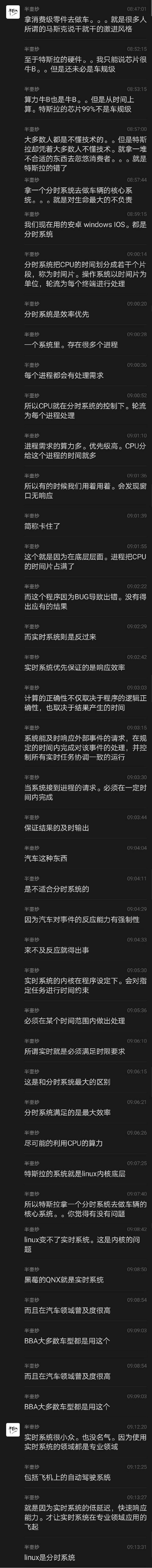 这里就要提到特斯拉车机系统的工作原理了,前几天,有一位技术大牛分享了自己的观点(详情可查看下图),并得到了很多业内人士的认可。因此,笔者将这位大牛的话做了通俗易懂的总结,即常见的操作系统分为分时系统和实时系统,其中分时是指多个用户分享使用同一台计算机,多个程序分时共享硬件和软件资源,是一个多用户交互式操作系统。