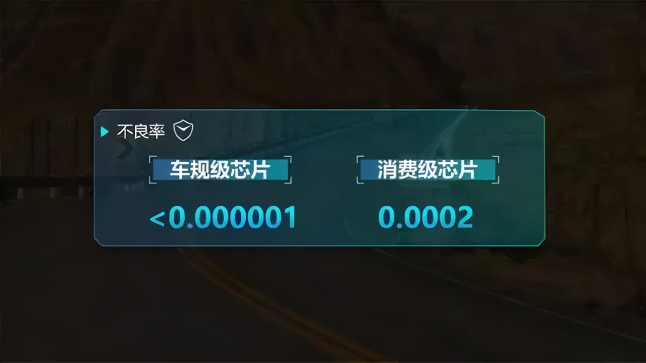 再来看安全层面,手机芯片可接受的不良率是万分之二,汽车芯片的不良率则不能高于百万分之一。