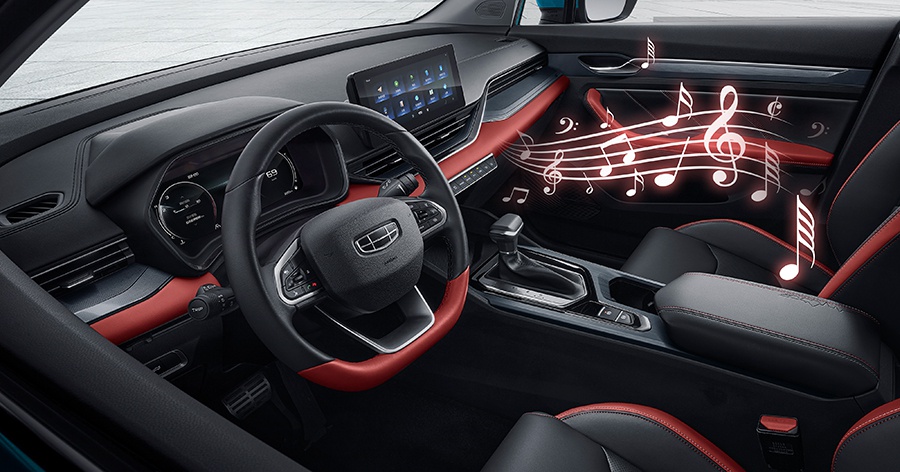 除此之外,作为行业首款音乐汽车,帝豪S搭载了一套草莓音乐智能交互系统。该系统不仅具有专业级的10扬声器环绕立体音效,还采用了ADI DSP顶级音乐芯片,配合9.1声道音响系统,能够提供极其出色的音色。