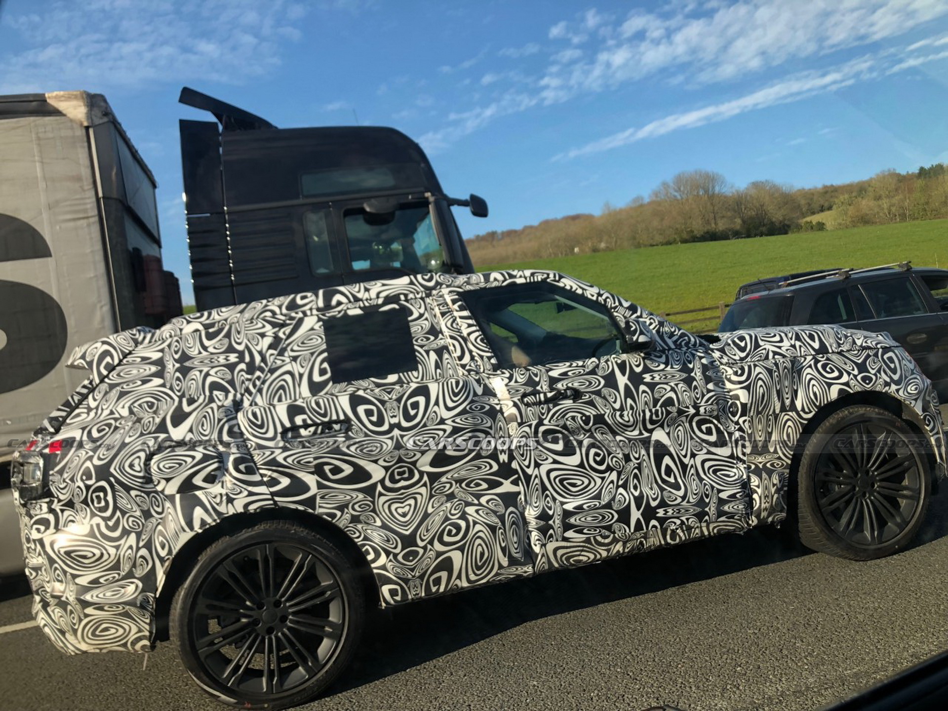 这些图片是由Steve Fowler拍摄的,看起来与我们在最近几个月拍摄的基础版揽胜原型非常相似。除非我们大错特错,否则一些不同之处使我们相信这很可能是新的运动车型。