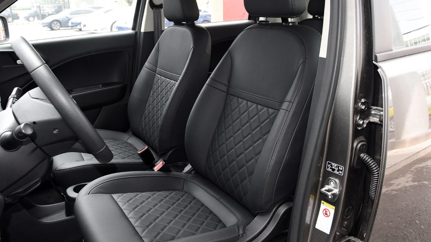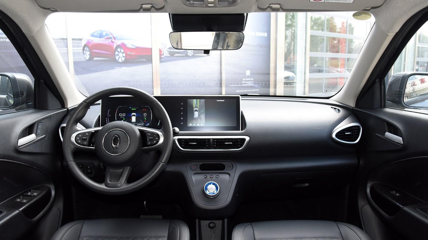外观设计没变,好不好看因人而异。作为新增车型外观还是延续了在售车型,没有进行特别的改变,整车看起来如车名神似猫的造型,前脸并没有使用新能源车型封闭格栅,而是在弧形面板上开了一堆散热口,看起来像猫嘴一样。如此个性的设计也让咖哥产生一个疑问,喜欢它的朋友会被呆萌设计所接受,不喜欢的恐怕很难接受它。内饰还是老样子,配置有惊喜。内饰和外观一样没有变化,使用了环抱式设计,最大亮点是采用了一体式联体屏设计,虽然不是什么新鲜的设计,但这在微型电动车上还是比较少见的。配置升级有亮点,入门版增加了前/后排头部气囊、仿皮座椅,顶配版增加了360度全景影像(此前需要花1500元选装)。