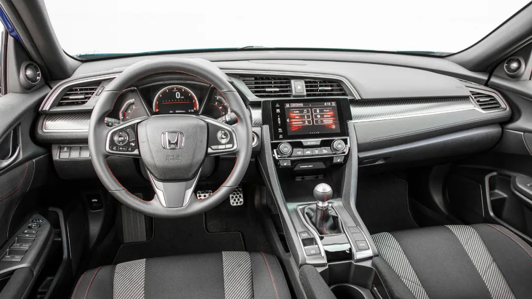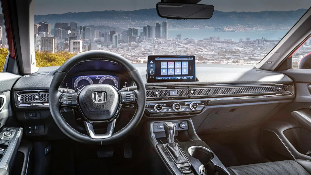 全新思域的内饰明显使用了简约的设计思路,与当下其它车型的风格大同小异,都是以横向中控台和悬浮式大屏作为主要元素,再加上一些细节的点缀。三幅式方向盘是全新的设计,底部采用镂空设计,两侧操作按键区域面积更小,整体看起来更加时尚。