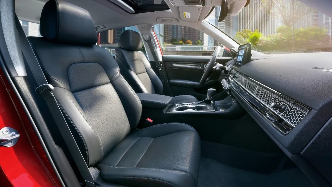 除了略带争议的出风口设计外,11代思域的内饰还是可圈可点的,中控台上方是一块9英寸的多媒体触控屏(低配为7英寸),内部集成了HondaConnect交互系统,并且还有Carplay和Android Auto手机互联。