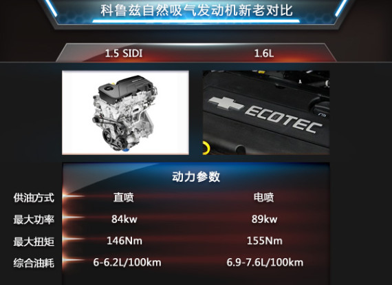 新一代科鲁兹搭载了1.4T和1.5L两款全新发动机,后者1.5 SIDI中置直喷发动机在细分市场中非常具有优势,最高功率为84kW,峰值扭矩146Nm,油耗低至6.0L/百公里,整车燃油经济方面提升13%-21%。此外,1.5L车型匹配了全新6速DSS智能启停变速箱,全系标配全铝副车架、增强型瓦特连杆和博世9代ESC。根据与老款1.6L与大众1.6L发动机的对比不难发现,1.5L Eccotec发动机在油耗与动力性能方面均有着不错的表现。