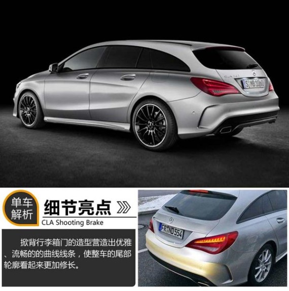 在CLS推出Shooting Brake版本并受到欢迎后,奔驰将在更多级别车型中推出这一“猎装”版车型。近日网通社从奔驰官方获悉,基于CLA衍生的Shooting Brake将在10月即将开幕的巴黎车展上首发亮相。新车外观继续CLS Shooting Brake的设计理念,并有望搭载1.6T、2.0T汽油引擎和2.2T柴油引擎三款动力配置。