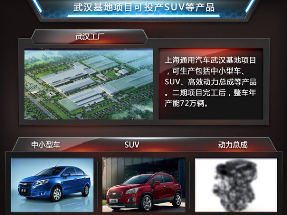 根据通用规划:在2014年至2018年间将斥资140亿美元在中国开设五个新的工厂,届时在华年产能将达到500万辆。其中,武汉工厂二期项目将于今年底开工建设,项目总投资75亿元,预计2017年投产运营,建成后可新增两班24万辆产能。加上一期的产能,通用汽车武汉基地整车产能未来可达到两班48万辆至三班72万辆。根据通用规划:武汉工厂将生产包括中小型车、SUV、高效动力总成等产品。