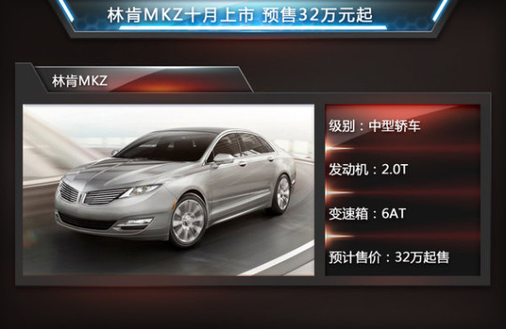 中国豪华车市场的飞速发展正吸引着越来越多豪华品牌涌入国内。今年4月福特汽车也宣布旗下豪华品牌——林肯今年正式回归中国市场。根据福特汽车规划未来3年林肯将在华推出5款全新车型包含MKS、 MKZ以及SUV车型MKX、MKC等。近日网通社从林肯官方获悉,其即将于10月23日正式在华推出MKZ以及MKC两款全新车型,并于当日公布官方售价。