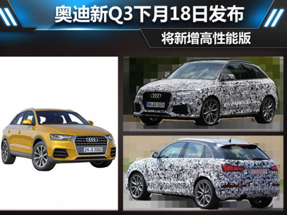 目前汽车市场中紧凑型SUV销售十分火热,奔驰和宝马品牌在这一定位区间分别推出GLA和X1,而同为德系豪华品牌的奥迪,也将加速对旗下产品进行全面升级,提升产品竞争力。近日网通社从海外媒体worldcarfans获悉:奥迪改款Q3将于下月洛杉矶车展正式发布,在外观及动力上都将有一定调整。除此之外,新款Q3还有望同时推出高性能版本车型RS Q3,进一步抢占高性能车这一细分领域。