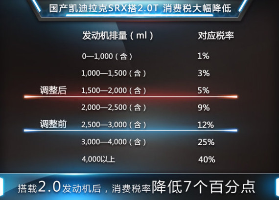 目前,凯迪拉克SRX搭载3.0L、3.6L两款引擎,搭载2.0T涡轮增压引擎的国产SRX消费税率会相应降低。2.0排量的车型比3.0排量车型消费税率降低7%。该车推出后将进一步拉低SRX的入门门槛,售价的降低也为消费者提供更高的性价比。(网通社 2014年10月17日 北京报道)