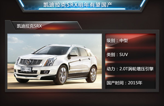约翰·德·尼琛近日向媒体透露了凯迪拉克在华国产计划,凯迪拉克即将推出的旗舰轿车CT6和凯迪拉克SRX将在华投产。今年,凯迪拉克在华保持高速增长SRX贡献了不少销量。通用中国高层此前曾表示,明年一季度将推出凯迪拉克第三款国产车型。作为目前在华热销的SUV车型,SRX无疑将成为凯迪拉克在华第三款国产车型。