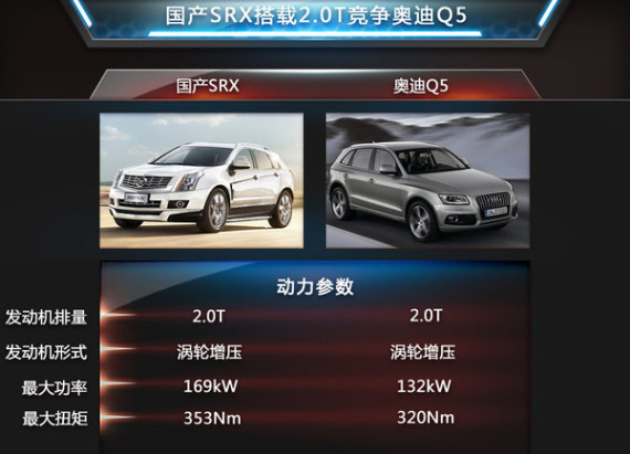 凯迪拉克SRX将在通用位于上海的凯迪拉克工厂投产,动力方面搭载与ATS-L相同的2.0T发动机。该发动机最大功率169kW,峰值扭矩达353Nm。纵观国内豪华中型SUV市场,奥迪Q5将是其最为主要的竞争对手。与竞争对手奥迪Q5相比,SRX动力参数上优势明显。强劲的动力将成为其吸引消费者一大利器。如果未来在配置和价格上下功夫,将有很大竞争力。