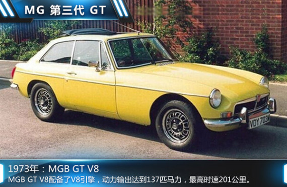 在经历了前两代GT车型的成功后,人们对于该系列车型的期待愈加强烈。幸运的是,MG在1973年再次为车迷们带来惊喜,推出了颇具传奇色彩的第三代产品——MGB GT V8。该车配备了V8引擎,动力输出达到137匹马力,最高时速201公里,百公里加速更是突破8秒,成就了“路上最快汽车”的美誉,同时也就此奠定了MG的赛道基因。