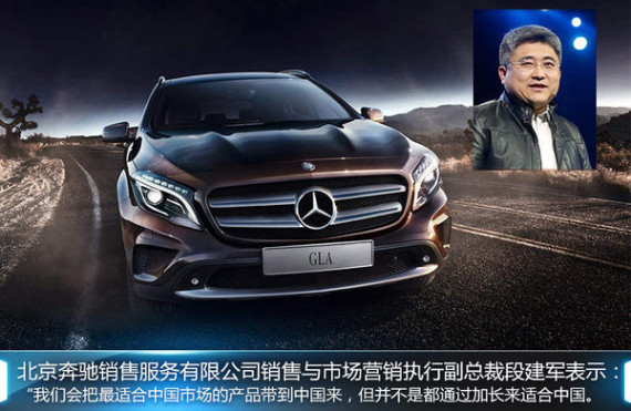 此前奔驰首款紧凑型SUV产品GLA正式引入国内销售,其先期以进口方式推出了GLA 200和GLA 260 4MATIC两款产品。与此同时,奔驰也对外公布了的该款产品明年的国产规划,届时GLA系列产品将全面实现在华的投产。不过当网通社在内的多位记者问及:未来GLA的国产版本是否会同轿车产品一样对轴距进行加长时,北京梅赛德斯-奔驰销售服务有限公司销售与市场营销执行副总裁段建军先生予以了否认,他表示:“我们对E级车、C级车都进行了加长,但并不意味着我们在所有产品上都通过加长来适合中国。”同时关于未来国产和进口车型的产品布局上,段建军也补充介绍到:我们先期引进进口车,是为了有效占领市场,并尽早满足客户的需求,明年二季度GLA国产后将会停止进口车型销售。