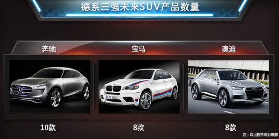 另外从奔驰未来的产品规划中可以看出,近几年市场表现持续火热的SUV市场将成为该品牌未来发展的重中之重。而随着其所计划推出的SUV车型全部投放市场后,奔驰在该领域所覆盖的产品有望增至10款,届时与老对手宝马和奥迪的SUV阵营相比,将有明显优势。