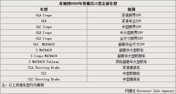 近期奔驰已推出了诸如GLA和CLA在内的多款全新产品,使其产品的覆盖领域更广。而这也仅仅是奔驰对于自身产品线进行扩充计划的开始,近日奔驰研究和开发负责人托马斯·韦伯向网通社在内的多家媒体表示:在2020年之前推出12款全新奔驰品牌车型,均是没有上一代车型的全新产品。据此可以看出奔驰将在未来的6年内,平均每年推出两款全新车型。