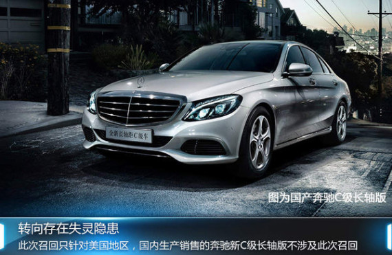 目前全新一代奔驰C级轿车,已于今年8月25日正式与国内消费者见面。新车针对中国市场喜好进行了加长,动力方面新车搭载2.0T高/低功率引擎,共推出四款车型,售价为36.9-47.9万元。对于国内在售的全新奔驰C级加长版轿车是否存在与国外车型类似的安全隐患,网通社咨询奔驰官方400后得知,国内销售的全新奔驰C级长轴版为国产车型,在产地和零部件供应上与国外车型不同,且奔驰美国公司曾表示此次召回只针美国地区,因此不受此次召回计划影响。