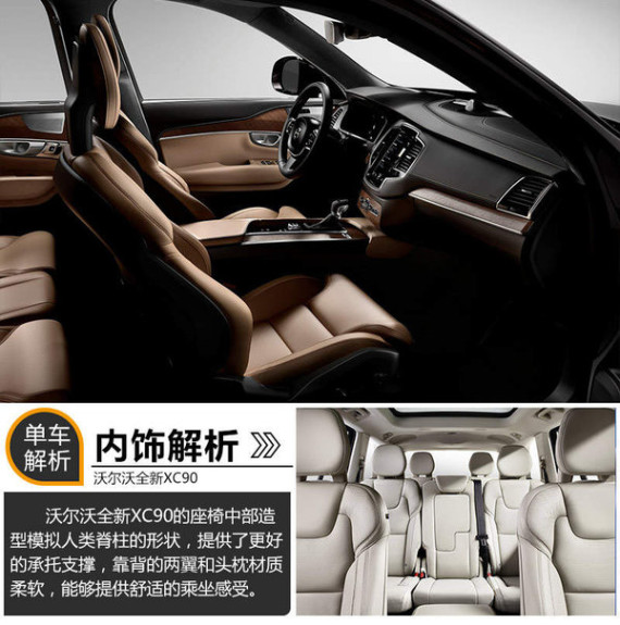 沃尔沃全新XC90的座椅极具特色,座椅靠背中部的构造模拟人类脊柱的形状,提供了更好的承托和支撑。靠背的两翼和头枕采用非常柔软的材质,为驾乘者提供了十分舒适的乘坐感受。在第二排座椅的中间位置还可以很轻松的变为儿童座椅,虽然不太适用于较小的儿童乘坐,但是这依然是一个很人性化的设计。