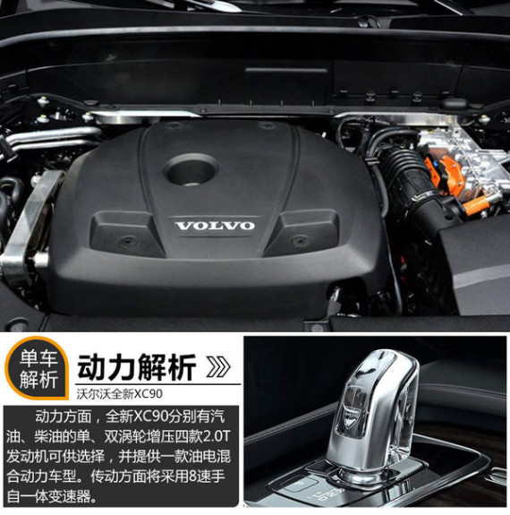 在动力方面,新一代XC90将采用四种动力配置。在汽油发动机方面,T5车型搭载了一台最大功率189kW,峰值扭矩350N·m的2.0T四缸发动机,而T6车型则采用了一台双增压发动机,最大功率则达到了239kW,峰值扭矩为400N·m。同时,新车提供两款柴油发动机,其中单涡轮增压引擎最大功率142kW,最大扭矩400N·m;双涡轮增压引擎在上述两项数据上则分别为168kW和470N·m。
