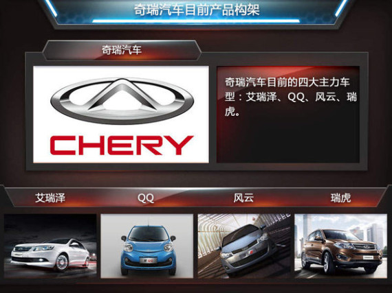 奇瑞汽车正在逐步形成自己的4大产品系列,艾瑞泽、QQ、瑞虎和风云,旨在囊括不同的消费人群。艾瑞泽代表了奇瑞的最高研发水平,是追求品质和细节质感的不二之选。瑞虎系列是为了喜爱城市SUV的客户。风云系列则更注重产品的性价比,实用却不华丽。QQ系列会承担所有的微车系列,为追求靓丽的外形,欢乐永伴的年轻群体。