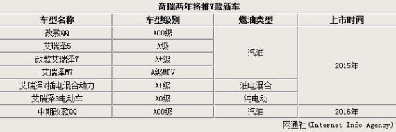 按照企业规划,奇瑞明年将推出艾瑞泽5、改款艾瑞泽7、全新7座MPV艾瑞泽M7,其中M7将提供1.8L和2.0L两款发动机供消费者选择。同年,奇瑞新能源还将推出艾瑞泽7插电混合动力车型以及艾瑞泽3电动车。到了2016年,奇瑞QQ将迎来中期改款。据悉,中期改款后的QQ外观将会有很大改变,整体造型将会更加时尚。届时,上述7款车型将使奇瑞的产品线非常丰富。而这当中的5款艾瑞泽车型则会成为奇瑞的主推产品。
