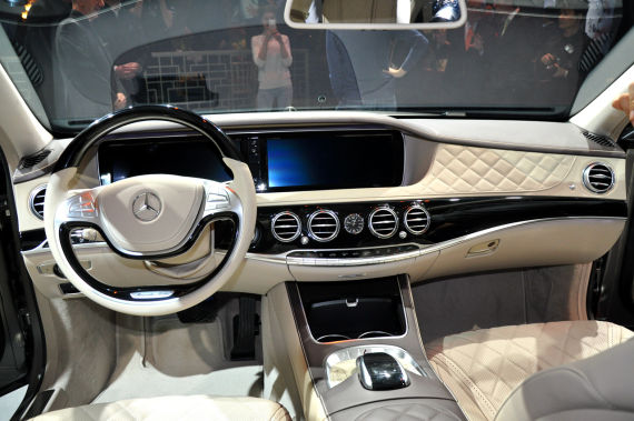 内饰方面,迈巴赫S600采用2+2座椅布局,后排的乘坐舒适度近乎完美。由于3.5米的超长轴距,乘坐者甚至可以将电动座椅放至最低,以近乎躺着的姿态乘坐。毫无疑问,迈巴赫S600在豪华程度上会超越现款的奔驰S级。值得一提的是,虽然像柏林之声音响、前后排座椅通风/加热/按摩等功能与S级一样,但迈巴赫S600的中控台石英钟由S级上面奔驰自家的石英钟升级到了更高端的IWC万国模拟时钟。