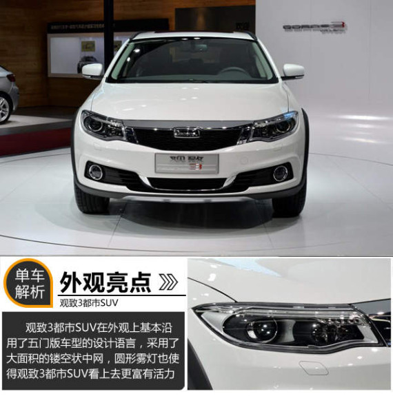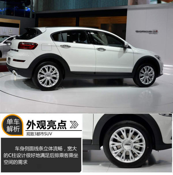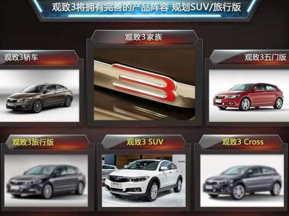 除观致3都市SUV外,观致汽车基于目前的模块化平台,还将打造跨界版和旅行车等产品。观致汽车官方表示:观致3的SUV车型与轿车版、五门版均是基于同一个模块化平台打造。按照观致汽车的产品定位,观致3都市SUV和旅行车将针对大家庭的消费趋势打造,最终形成统一且各具特色的产品组合。