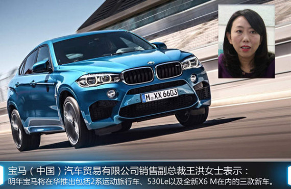 不久前开幕的广州车展上宝马全新X6正式在华上市,该新车也是继X4和i8等车型之后,该品牌2014年引入中国销售的第10款新产品。随着今年步入尾声,宝马对于明年的产品也有了新的规划,对此宝马(中国)汽车贸易有限公司销售副总裁王洪女士表示:明年宝马将在华推出包括2系运动旅行车、530Le以及全新X6 M在内的三款新车。其中最引人注目的无疑是宝马全球第一款插电混动轿车530Le,该款产品在沈阳铁西研发,也会在该工厂进行国产。
