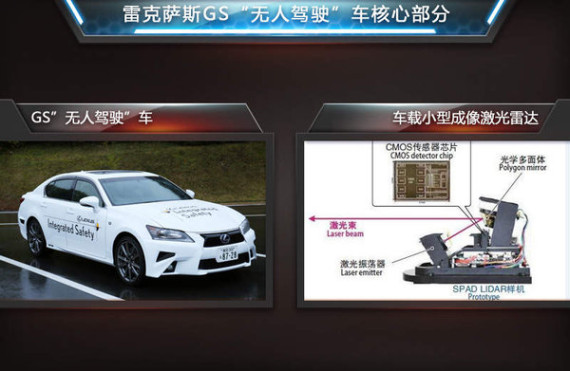 所谓雷克萨斯“无人驾驶”车,并不是说汽车内部没有人操作汽车直接行驶,而是当人坐进驾驶舱,汽车在不需要人操作的前提下自动完成起步、转向、加减速、停车等步骤,在进行这些操作之前还要让汽车知道自己在哪儿,要到哪里去等路线规划问题,其真正的核心部分在于车载小型激光雷达的使用。雷克萨斯新款“车载激光雷达”是老款体积的六分之一,可通过三维激光扫描仪等设备,在更大范围内建立三维模型,并配合GPS导航的使用,可进行定位操作,完成驾驶过程。