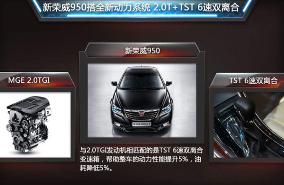 此前,据上汽官方介绍,全新动力总成CUBE-TECH是与北美通用联合研发的产物,包括SGE系列、MGE系列缸内直喷发动机,TST 6速双离合变速箱、TST 7速双离合变速箱以及新一代发动机启停系统。其中,新荣威950车型上所搭载的2.0TGI发动机是目前上汽旗下最先量产的MGE系列发动机。